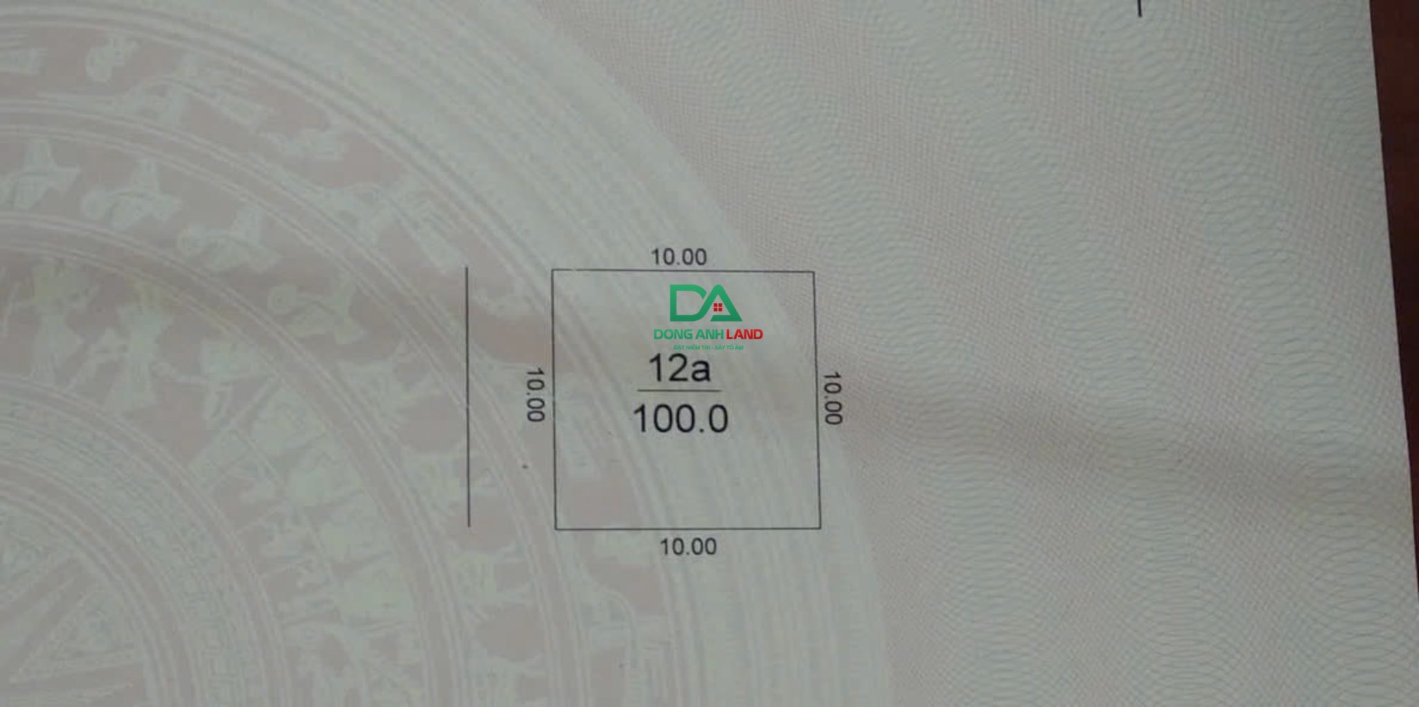 Diện tích 100m2, mặt tiền 10m