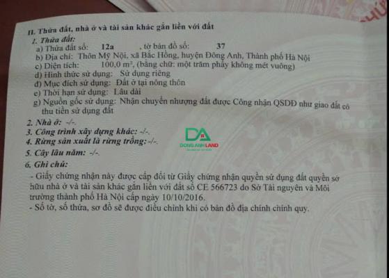 Bán 100m đất Phúc Thịnh Đông Anh vị trí tại thôn Mỹ Nội