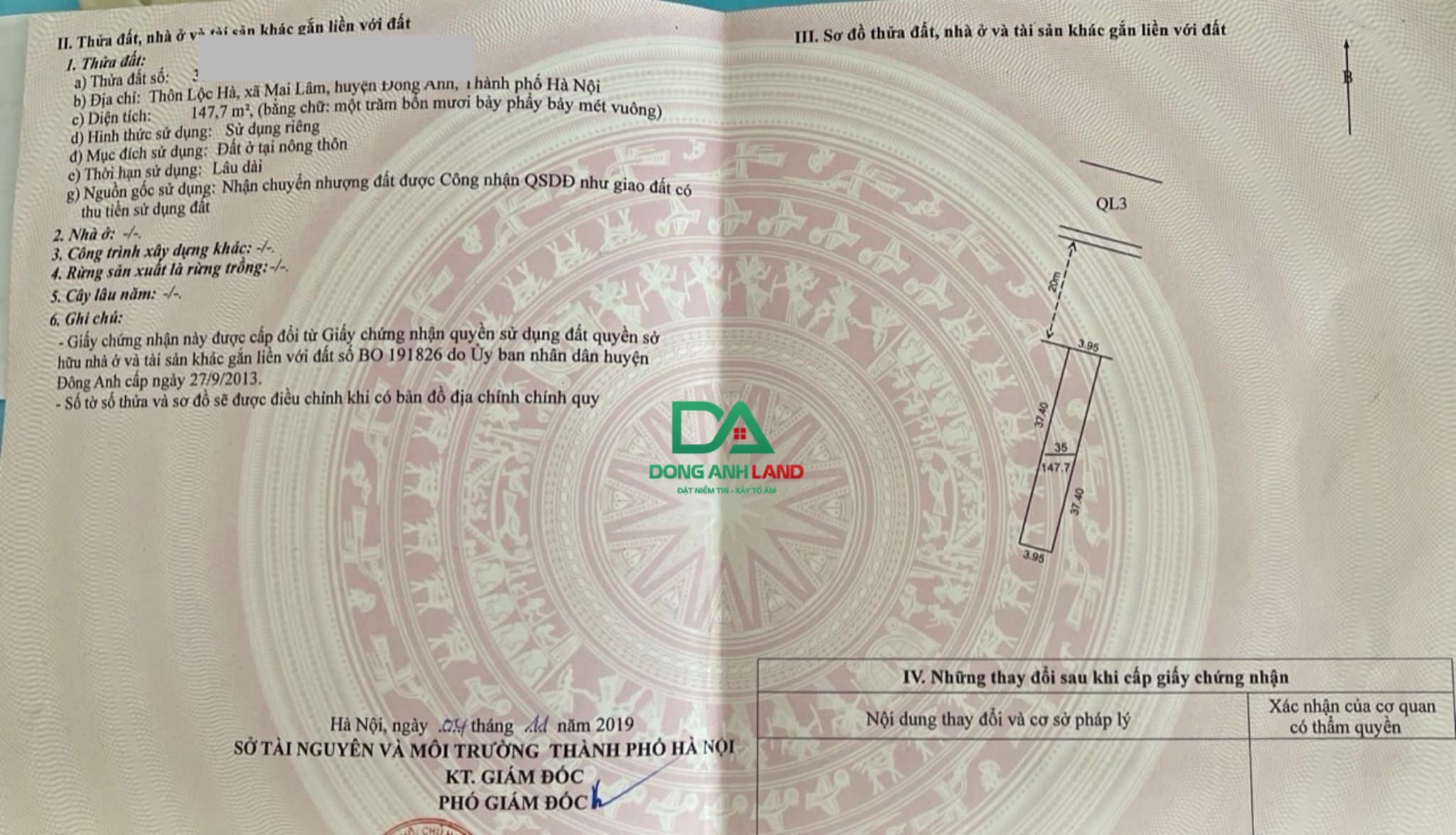Diện tích 147.7m2, mặt tiền 3.95m