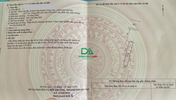 Bán 147.7m đất mặt đường QL3 kinh doanh sầm uất tại xã Mai Lâm Đông Anh gần dự án Vin Cổ Loa
