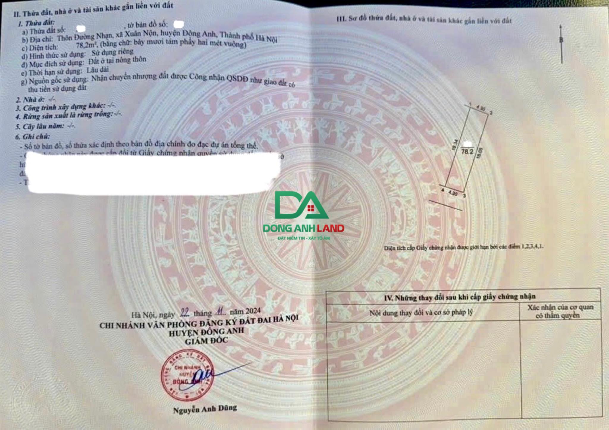 Diện tích 78,2m2, mặt tiền 4.3m