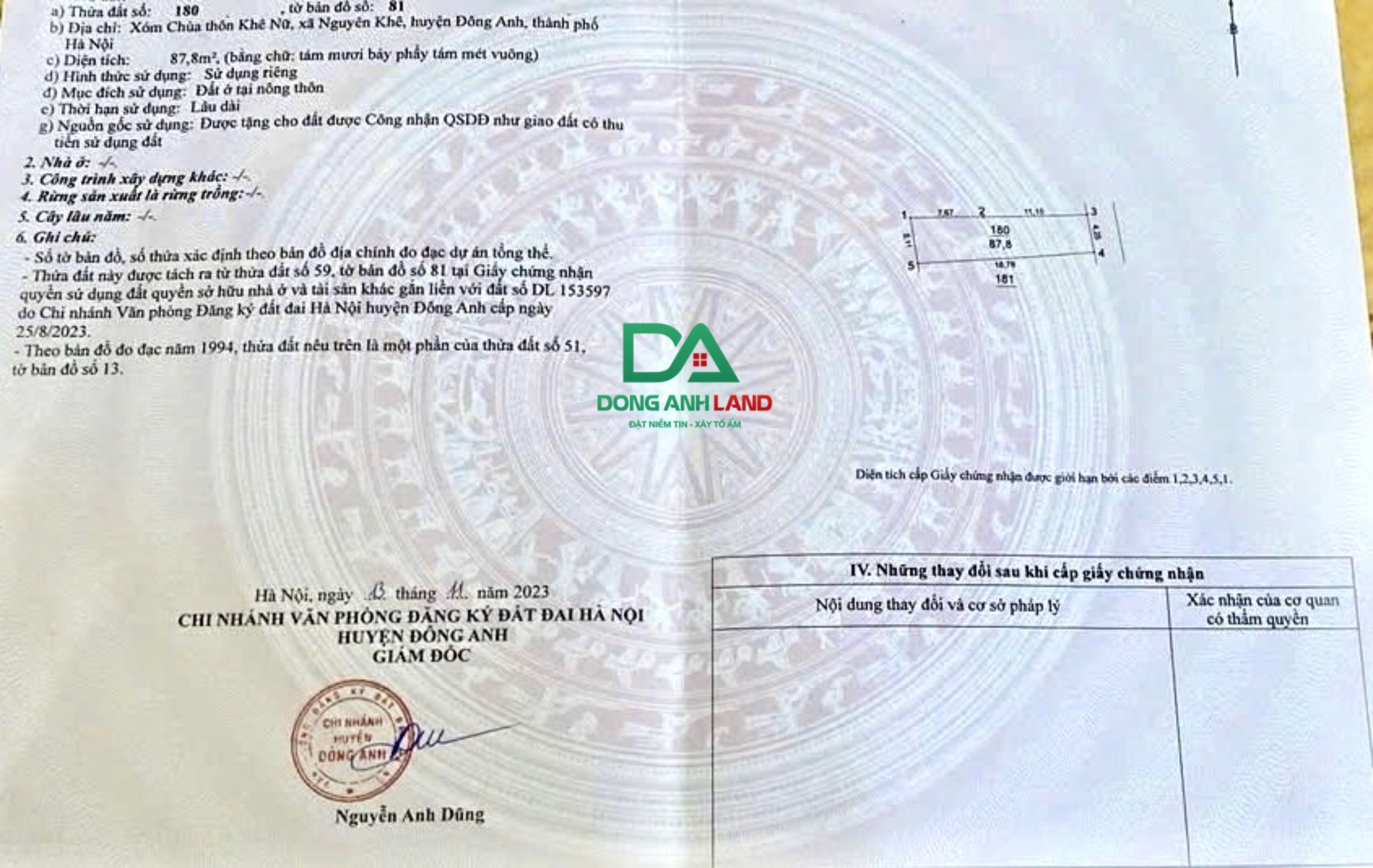 Bán 87.8m đất Khê Nữ Nguyên Khê Đông Anh gần đường Lê Hữu Tựu