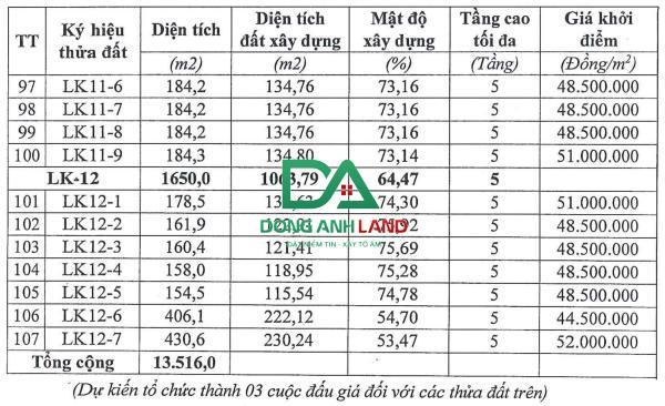 Diện tích từ 100m - 430m ( LIÊN HỆ ĐỂ NHẬN SƠ ĐỒ CHI TIẾT)