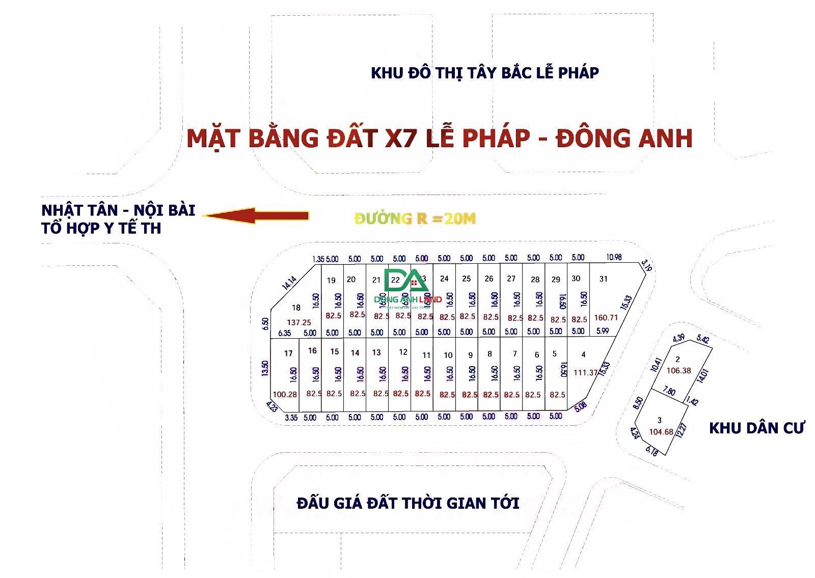 Bán đất đấu giá X7 Lễ Pháp Tiên Dương Đông Anh gần công viên Kim Quy đường 20m