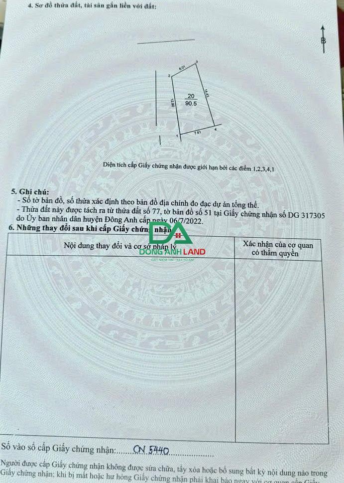 Bán đất Đông Anh 90,5m Đồng Nhân Hải Bối gần dự án siêu Thành phố Thông minh BRG
