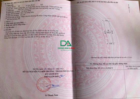 Bán đất Lương Quy Xuân Nộn 102.2m đường trục chính ô tô thông