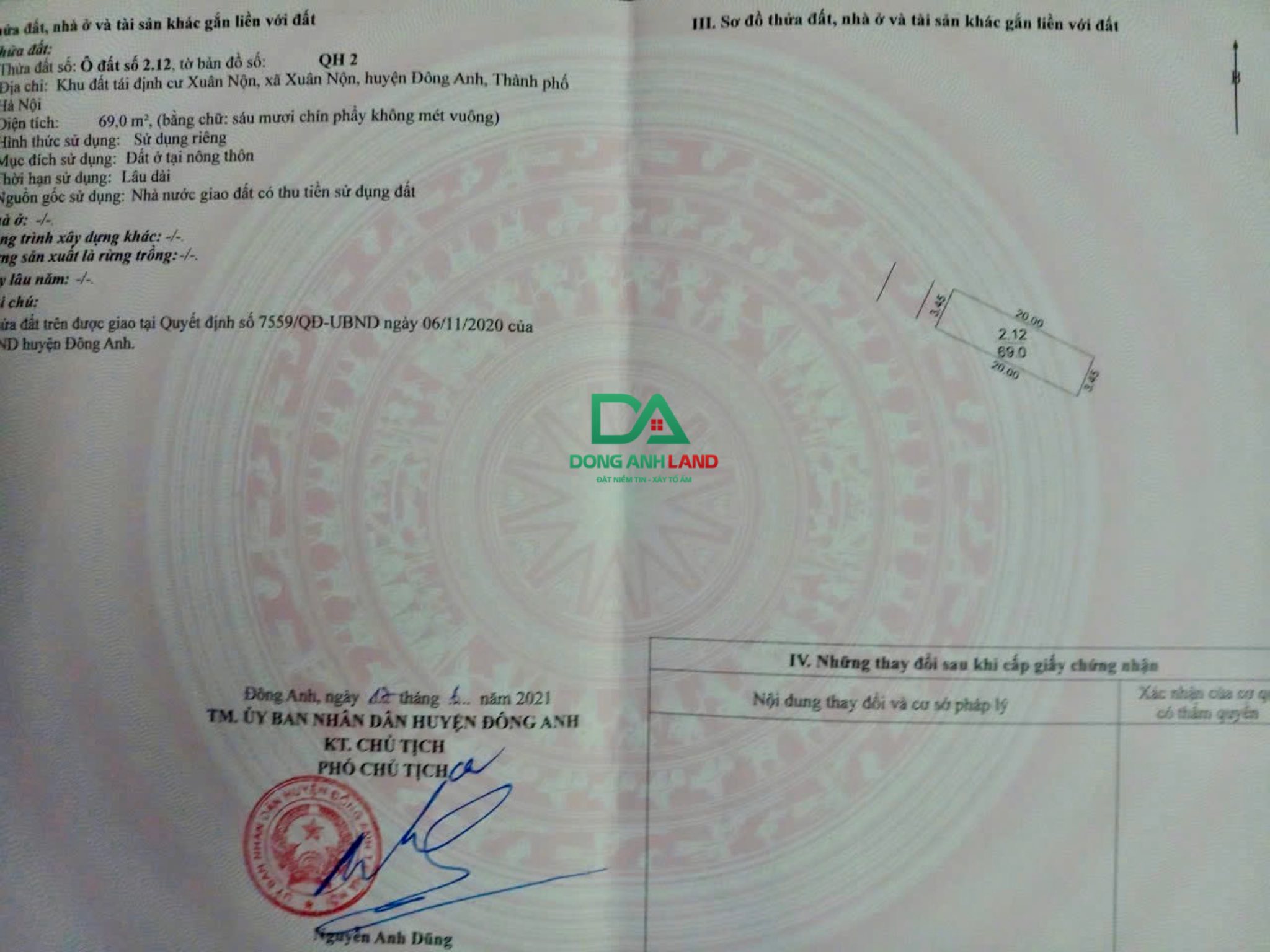 Bán đất mặt đường kinh doanh 69m2 tại Lương Quy Xuân Nộn Đông Anh