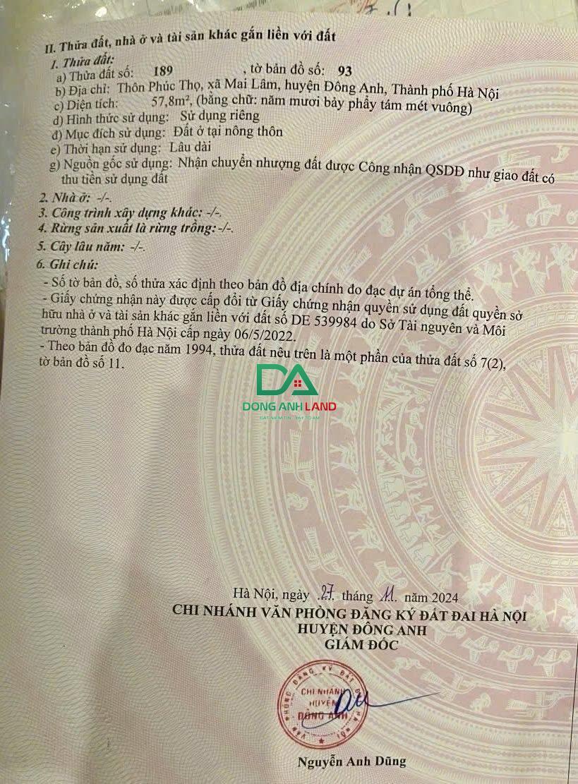 Tên : Lô 57,8m2 Phúc Thọ Mai Lâm