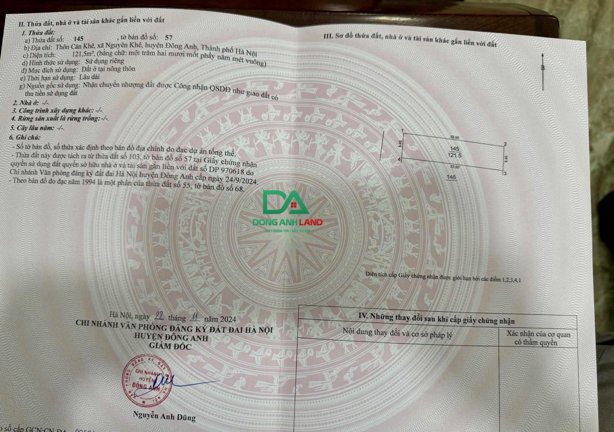 Bán đất thôn Cán Khê xã Phúc Thịnh Đông Anh lô 121.5m2 giá rẻ