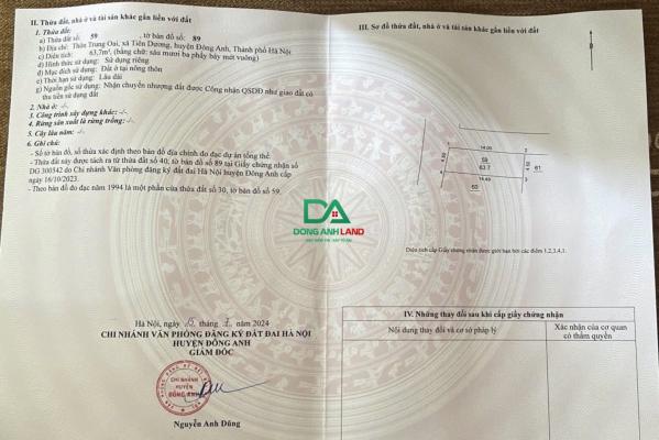 Bán đất xã Phúc Thịnh Đông Anh lô 63.7m tại Trung Oai Tiên Dương