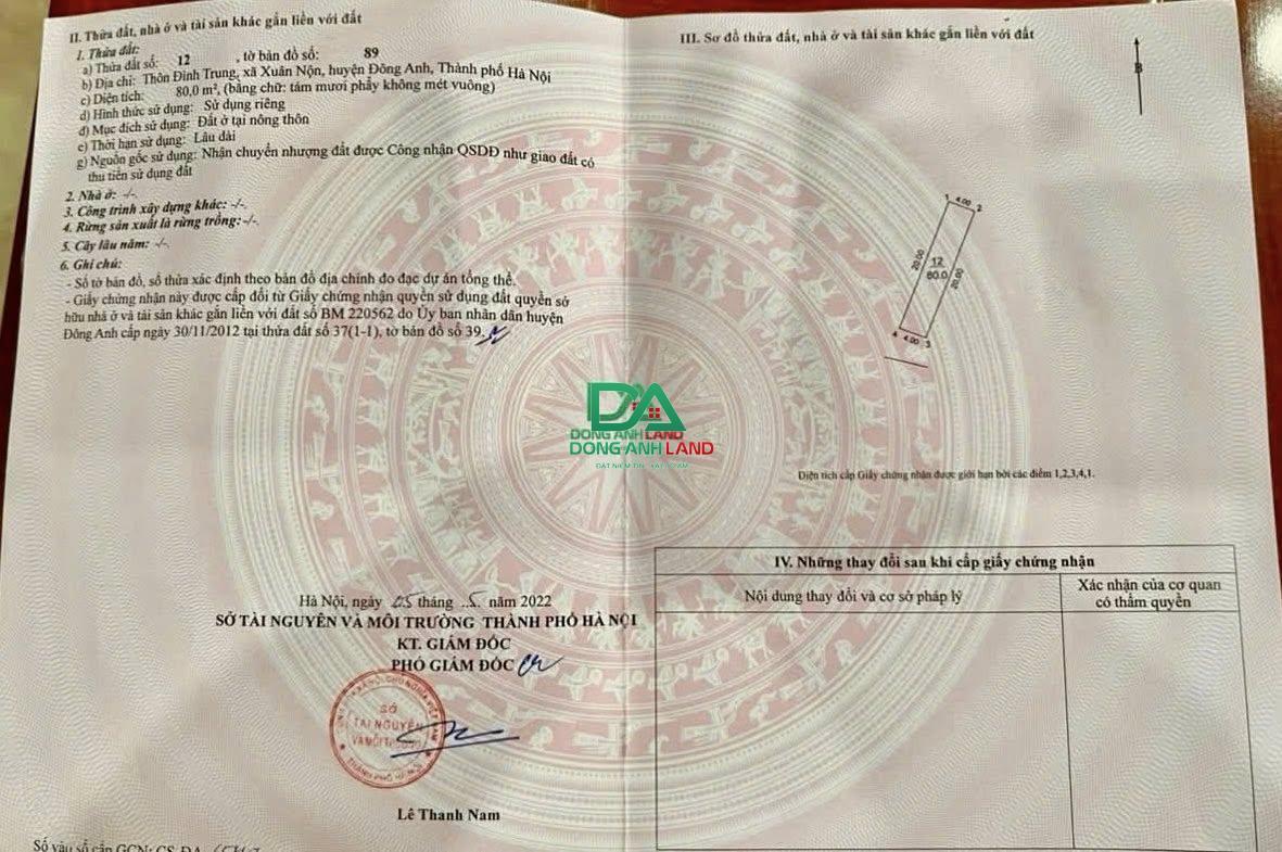 Bán đất Đình Trung Xuân Nộn Đông Anh 80m2 gần KCN 300ha