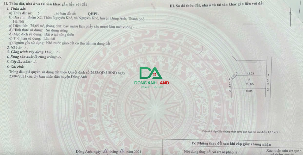 Bán gấp lô đất đấu giá X2 Nguyên Khê diện tích 75m² – Mặt tiền 5m, giá siêu tốt
