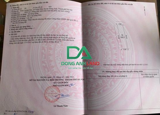 Bán lô đất 102,2m Lương Quy Xuân Nộn Đông Anh - Sổ đỏ giao dịch 24/7