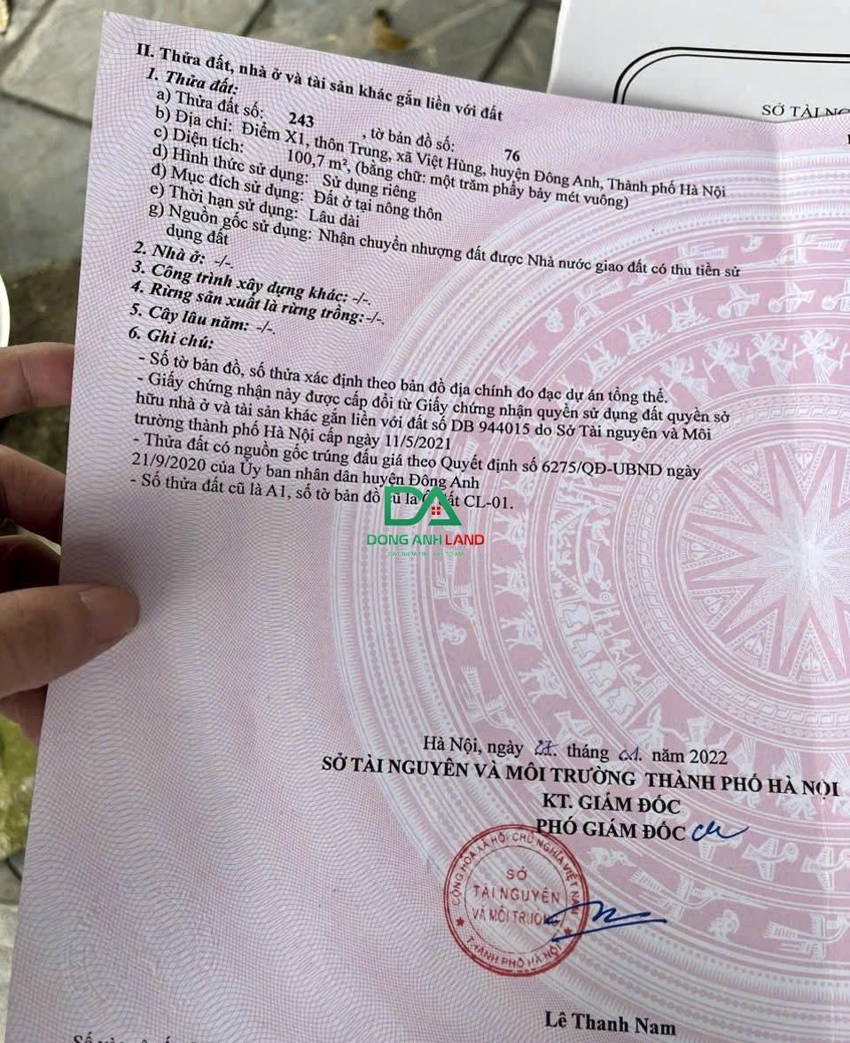 Gần dự án Vinhomes Cổ Loa, tiềm năng tăng giá.