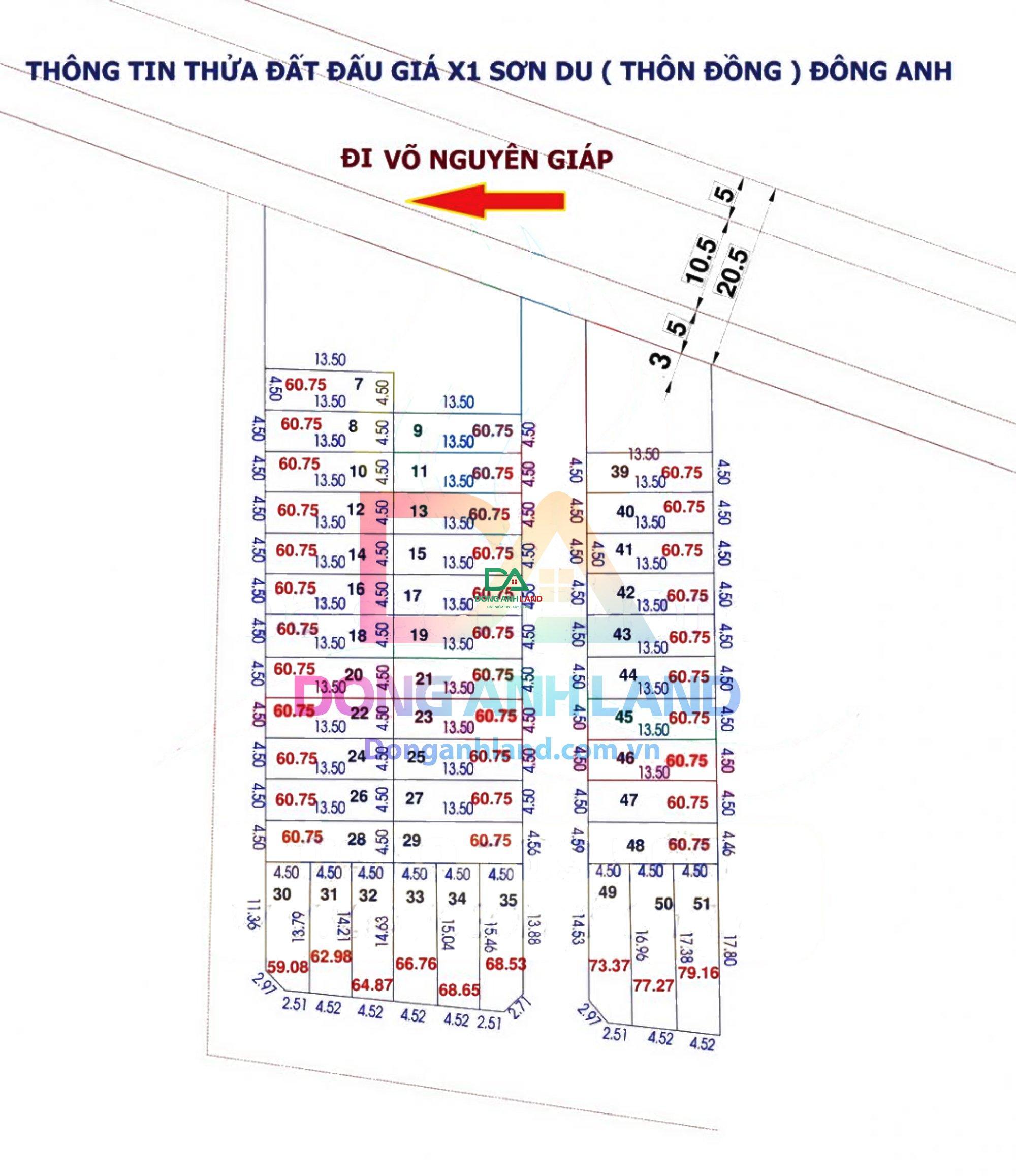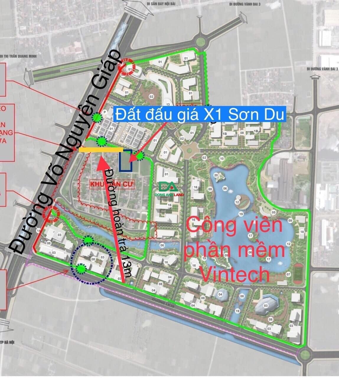 Vị trí bán đất đấu giá X1 Sơn Du Nguyên Khê Đông Anh gần đường Võ Nguyên Giáp.