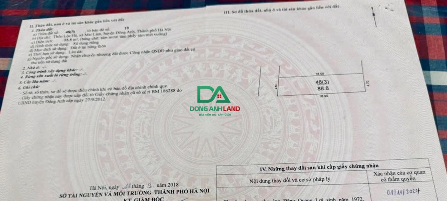 Diện tích 88,8m2, mặt tiền 4,5m