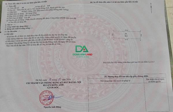 CC cần bán đất Đài Bi Uy Nỗ Đông Anh diện tích 99m2